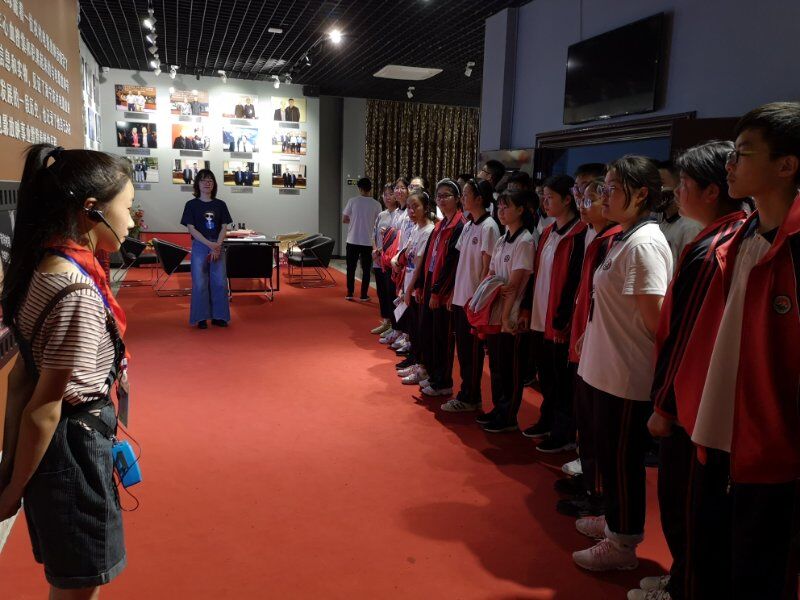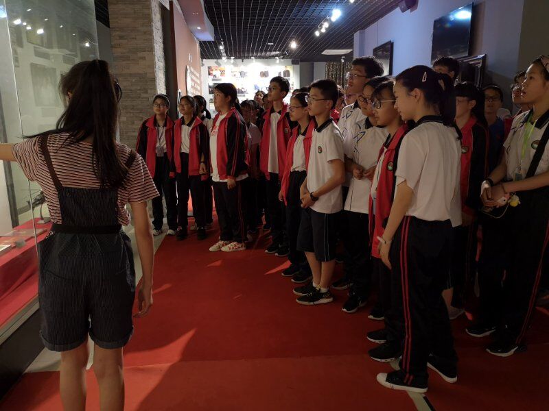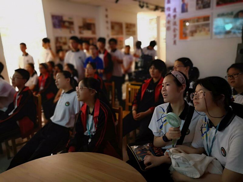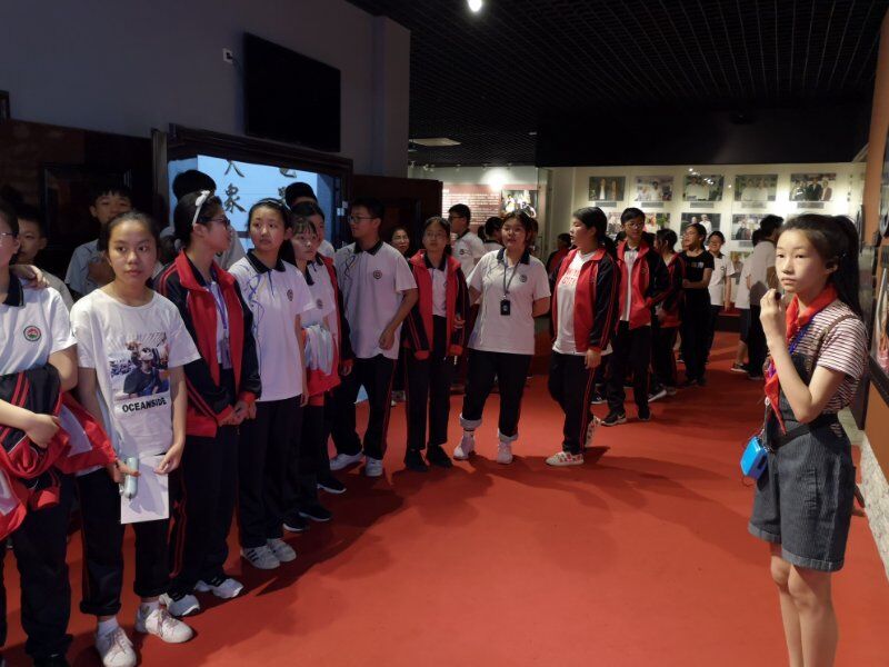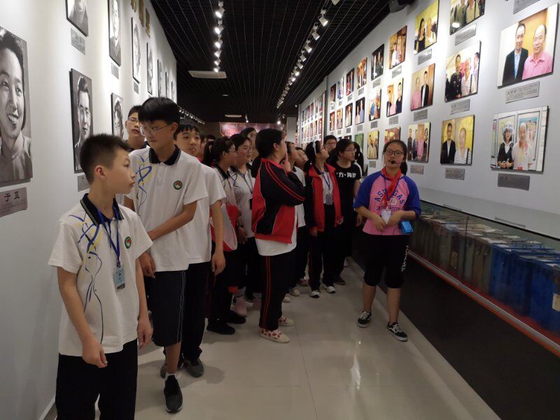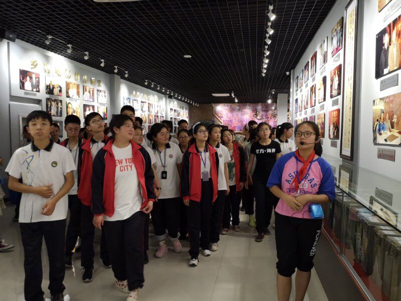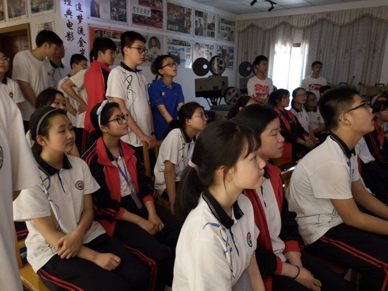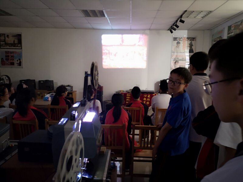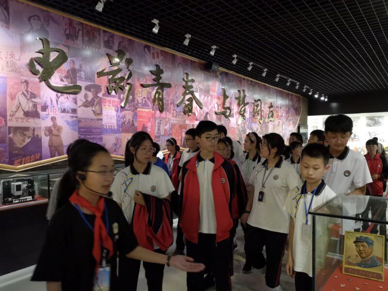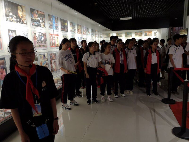 2019年5月22日海宁市周王庙镇初级中学组织学生参观(影教育人)许村镇九斤电影珍藏馆。讲解员