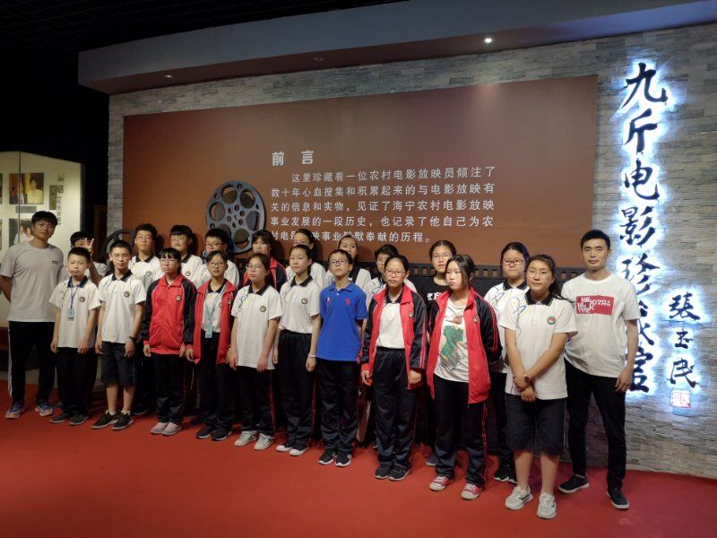 海宁市周王庙镇初级中学组织学生参观(影教育人)许村镇九斤电影珍藏馆