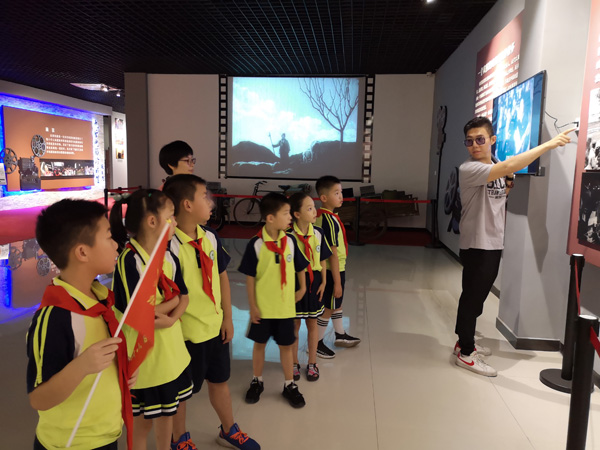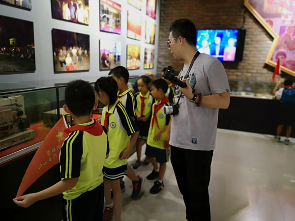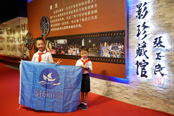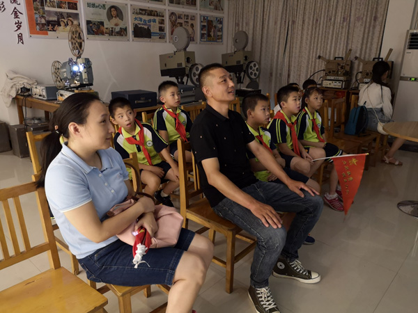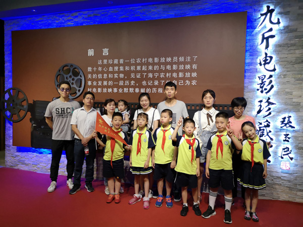 2019年7月28日,杭州市胜利小学和杭州市翠苑第二小学的学生到访海宁市许村镇沈士九斤电影珍藏馆参观学习,馆长爷爷热情给孩子们做了讲解,还给孩子们用珍藏的放映机放映了一场酣畅淋漓的电影《地雷战》。