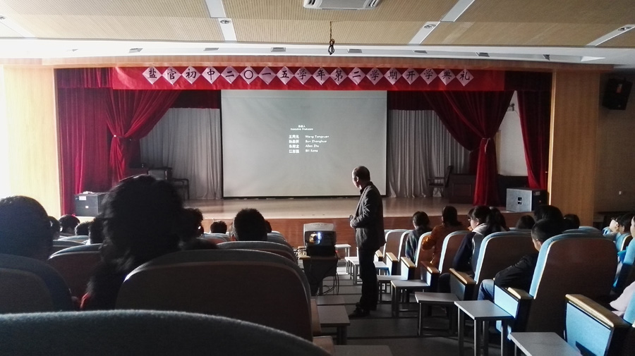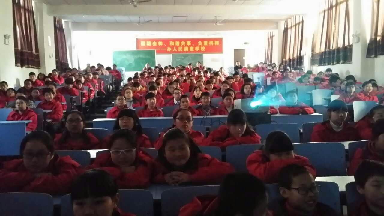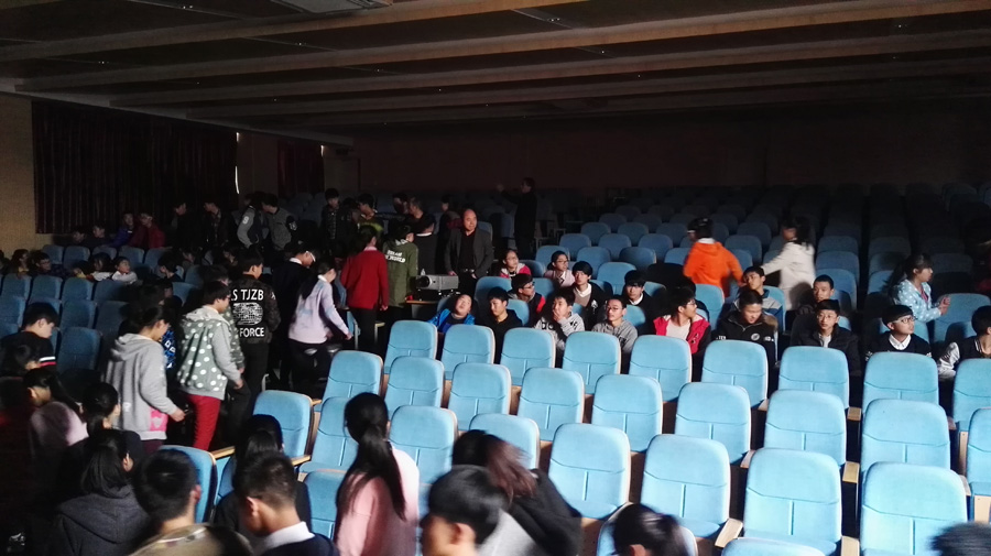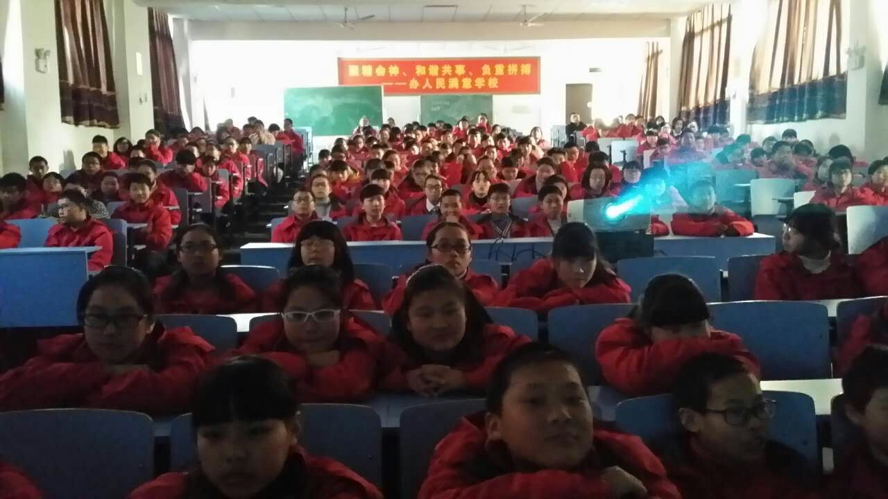 2016年3月4日盐官初中组织师生观看爱教电影。