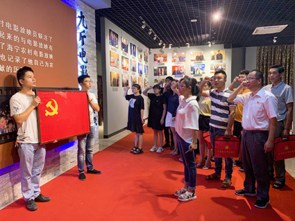 2019年8月17日上午,许村镇党校党支部党员在镇党建办工作人员和相关村组织委员带领下来到九斤电影珍藏馆参观,聆听珍藏馆创办者徐九斤先生的奋斗故事,感受农村电影放映人徐九斤先生对电影放映事业的初心,学习他爱岗敬业、无私奉献的精神,在光影中重拾自己的入党初心。