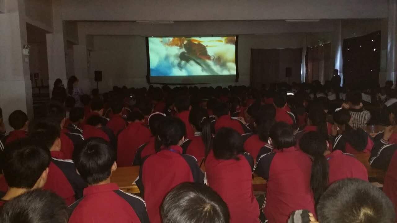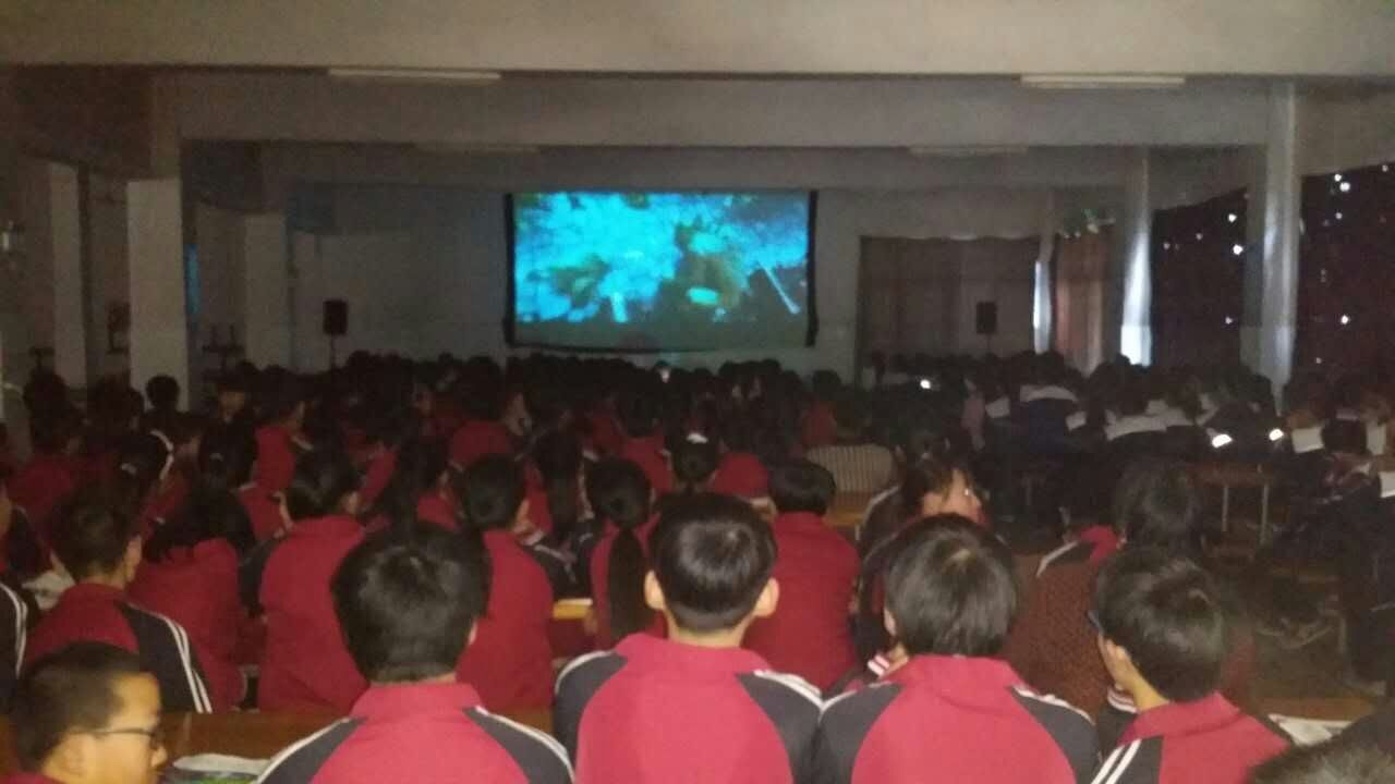 2016年4月1日,周王庙镇中学组织师生观看爱教电影