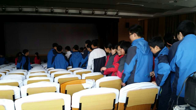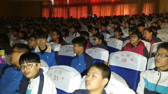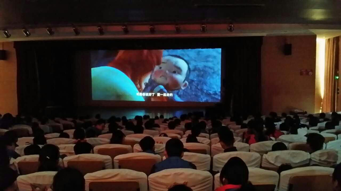 2016年4月12日,长安镇初级中学校园科技节电影放映活动组织师生观看爱教电影。