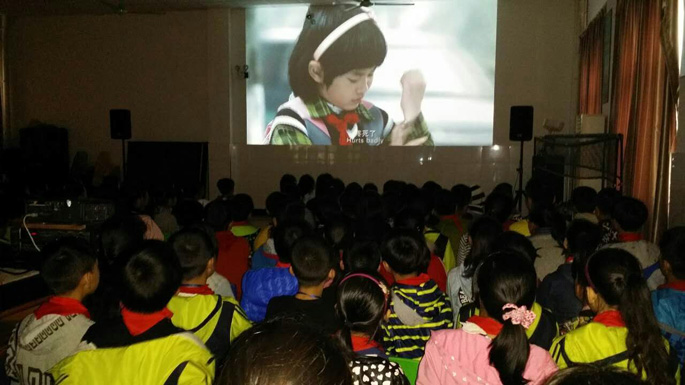 2016年4月21日,志华小学组织师生观看爱教电影。