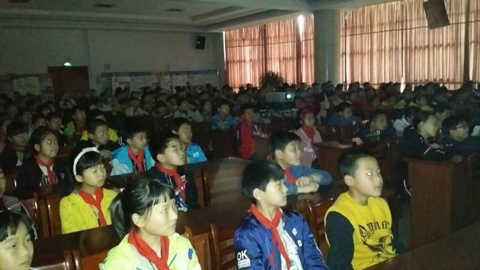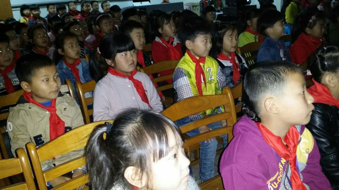 2016年4月29日,桐乡市崇德小学组织师生观看爱教电影。