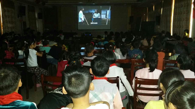 2016年5月4日,芝村中心小学组织师生观看爱教电影