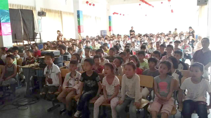 2016年5月6日盐官镇中心小学组织师生观看爱教电影,