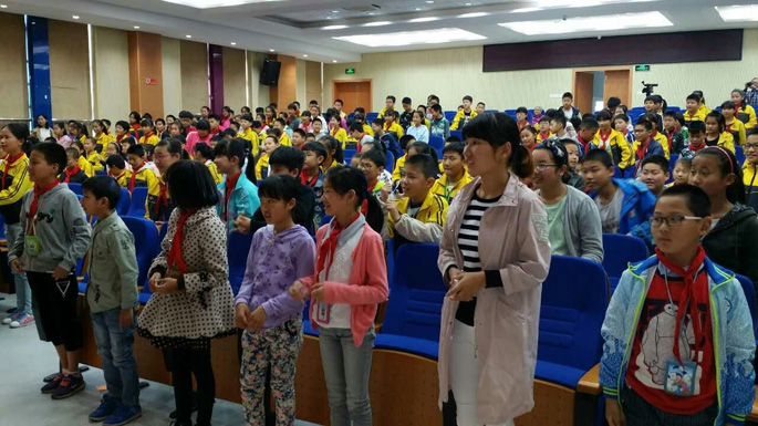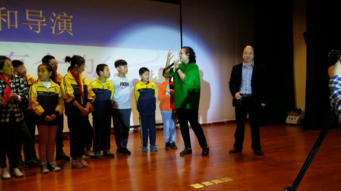 2016年5月9日盐仓学校组织师生观看爱教电影。