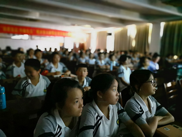 小学部师生观看由教育部中国儿童少年电影学会推荐的优秀儿童电影《美丽童年》 。