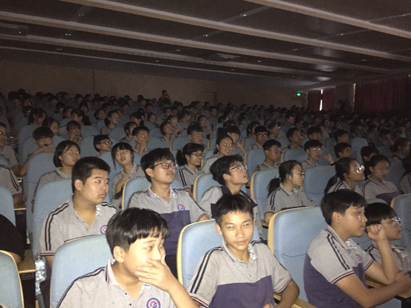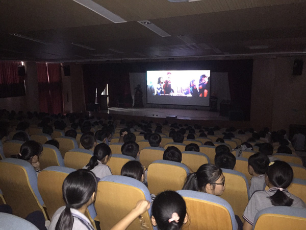 同学们在大礼堂观看电影