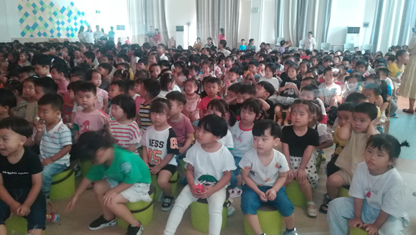 2019年9月29日,许村镇中心幼儿园组织幼儿班观看爱国主义教育动画电影《新地道战之父子奇兵》。