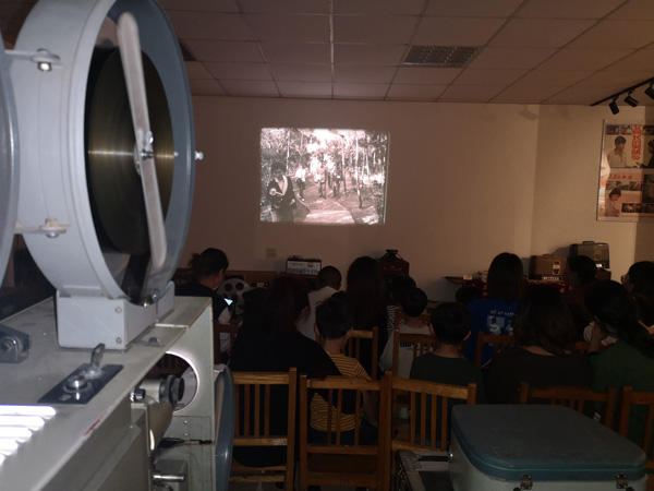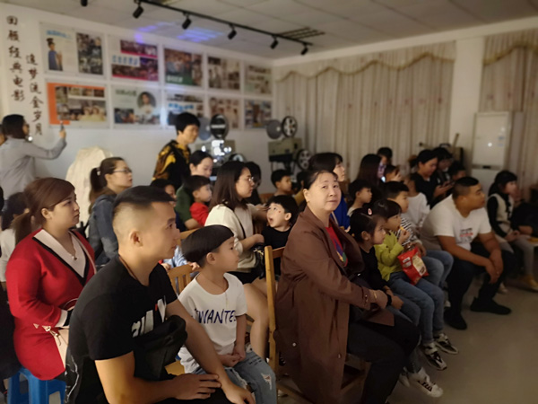 大家在放映厅观看红色电影