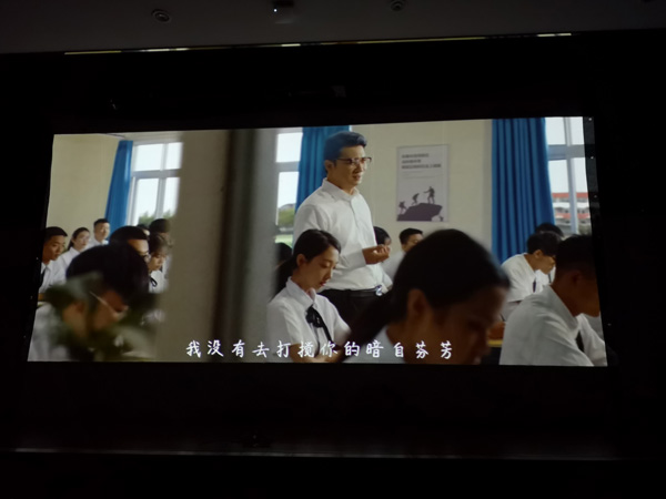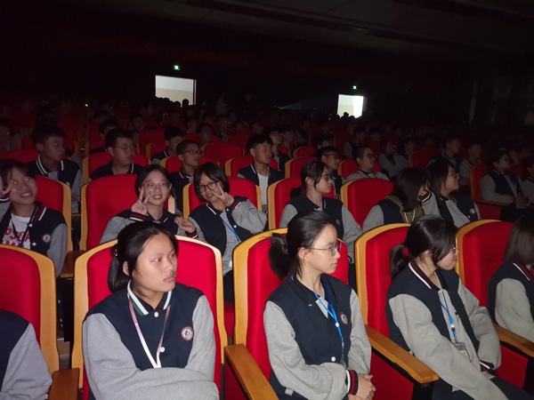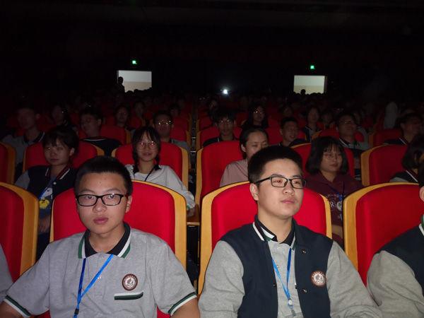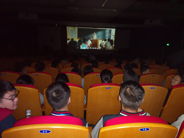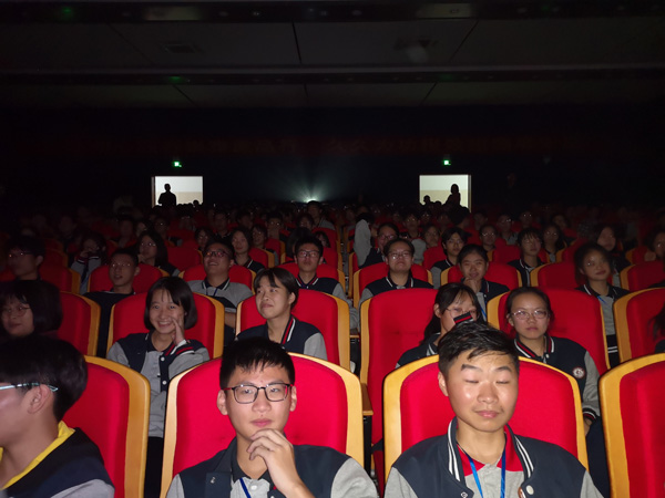 2019年10月16日,海宁中学组织师生观看励志电影《老师好》。