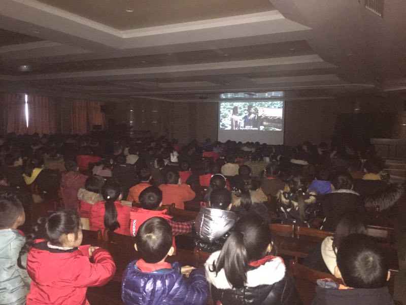 2019年2月27日海宁市辛江中心小学组织师生观看爱教电影《大荷花小荷花》。