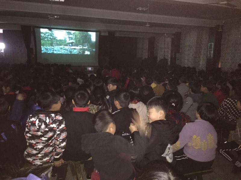 2019年3月7日海宁市周王庙镇中心小学组织师生观看爱教电影《大荷花小荷花》。