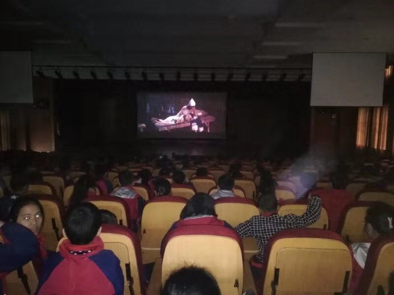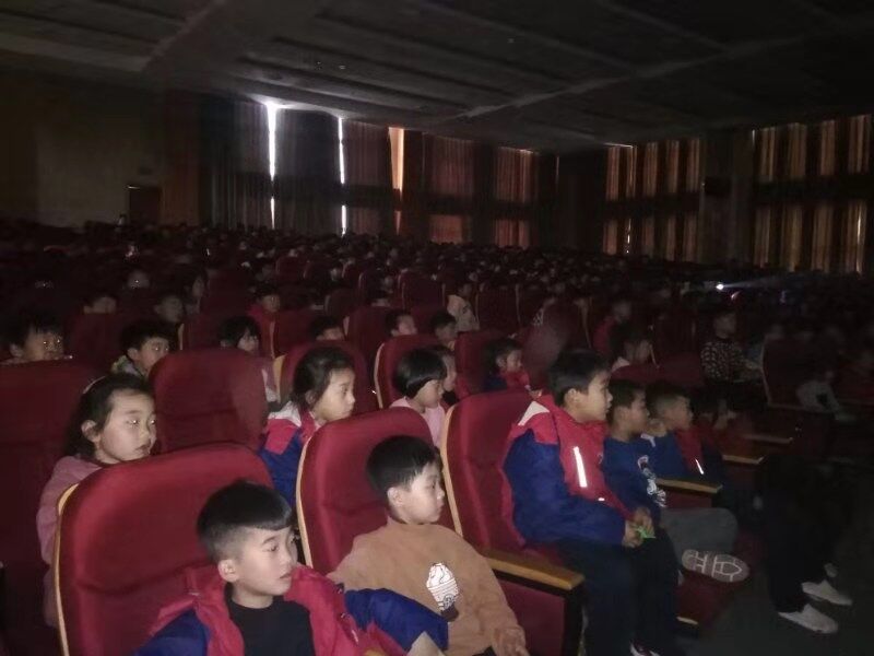 2019年3月19日海宁市仰山小学组织师生观看爱教电影《大荷花小荷花》。