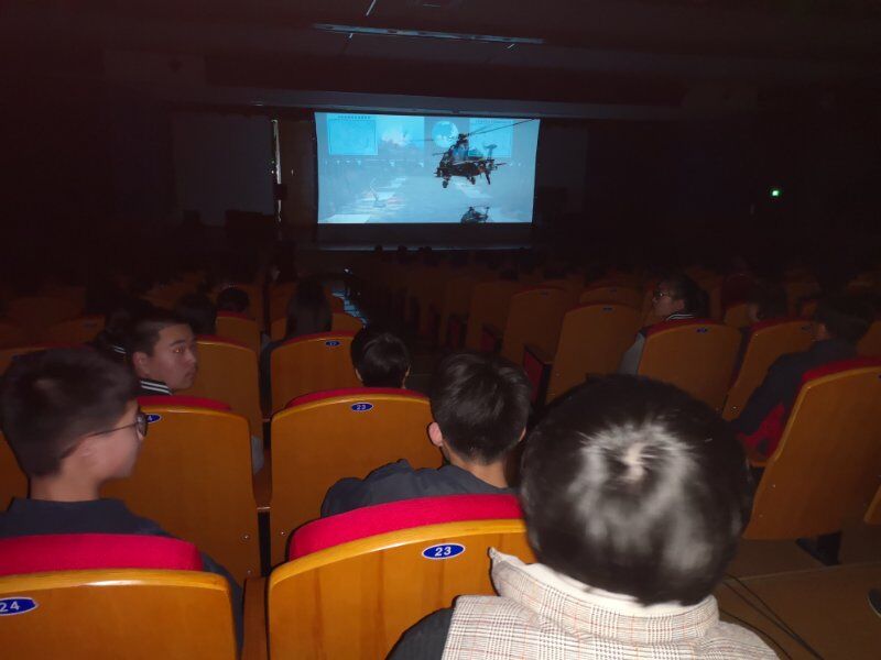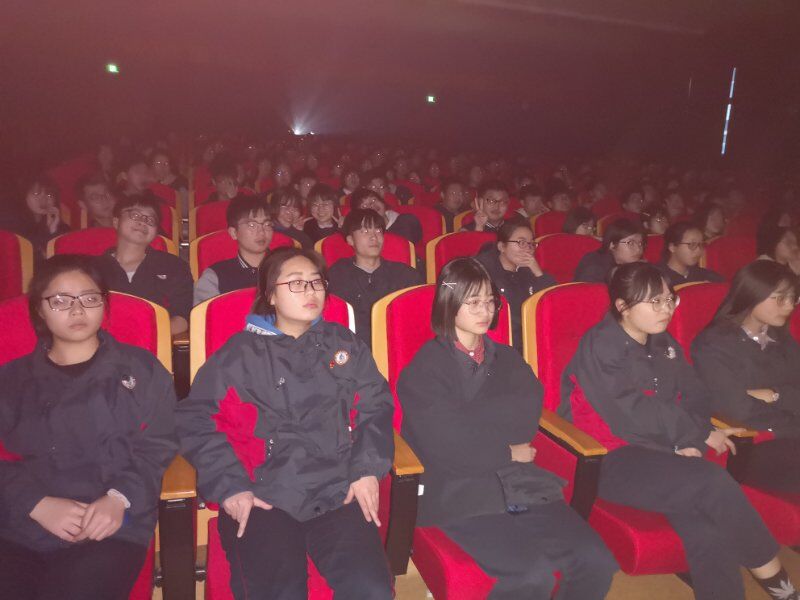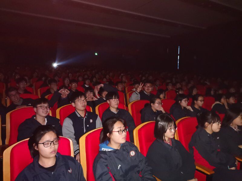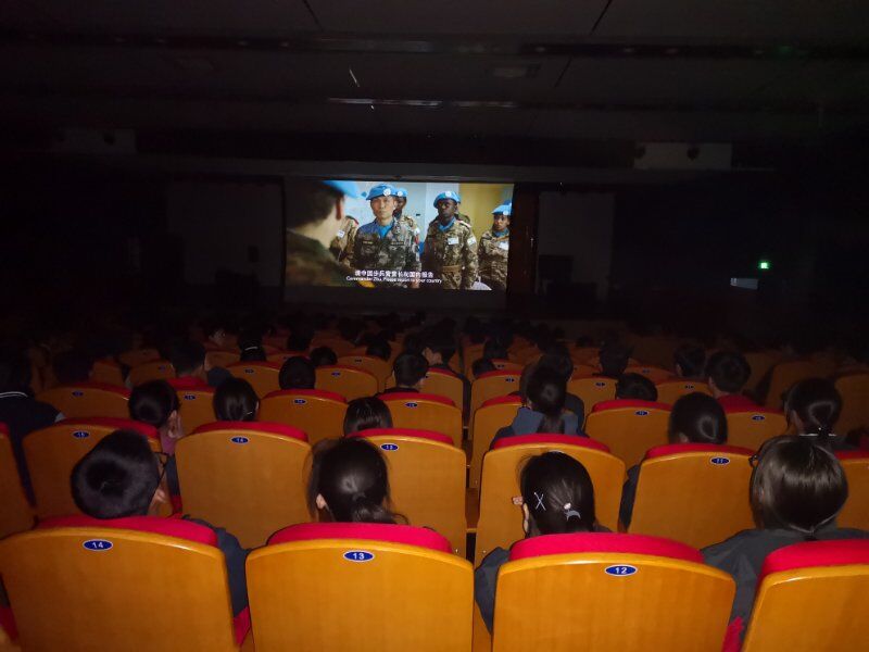 2019年3月22日海宁中学组织师生观看爱教电影《中国蓝盔》。