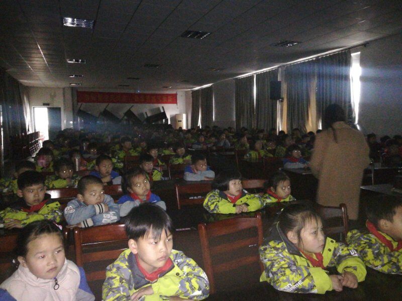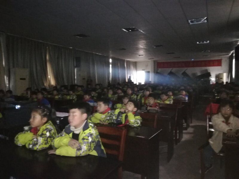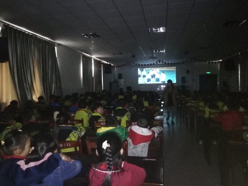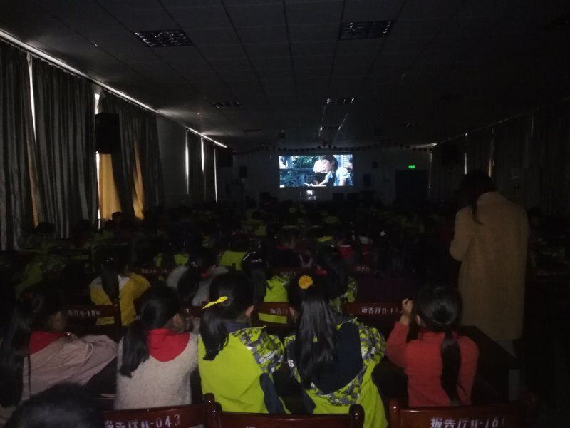 2019年3月27日桐乡市河山镇中心学校(小学)组织师生观看儿童励志电影《美丽童年》初中部观看爱教电影《中国蓝盔》。