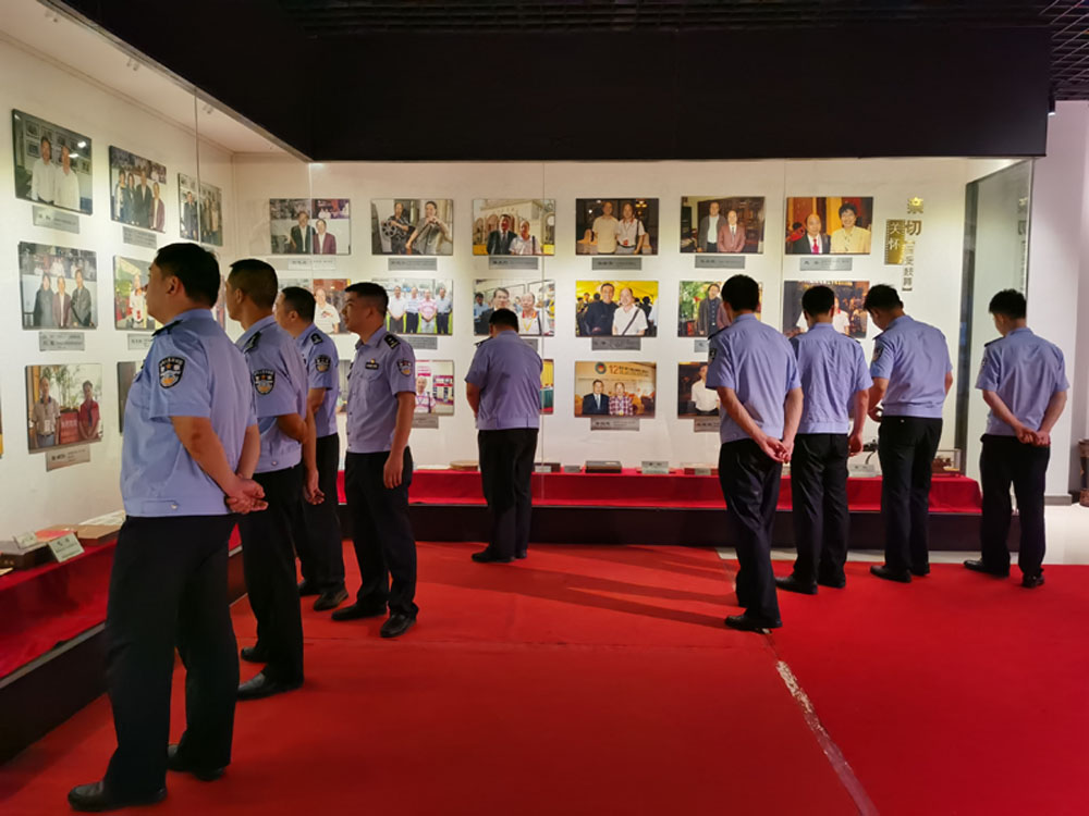 民警们在珍藏馆前与党旗合影
