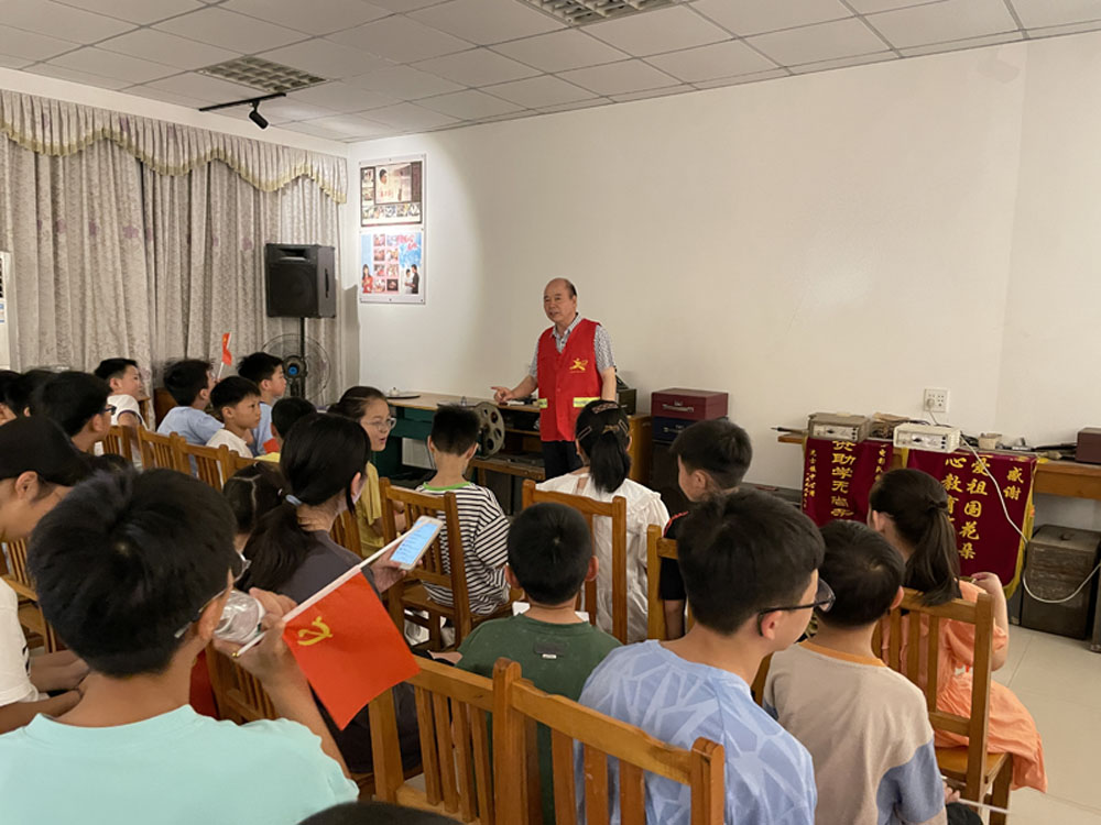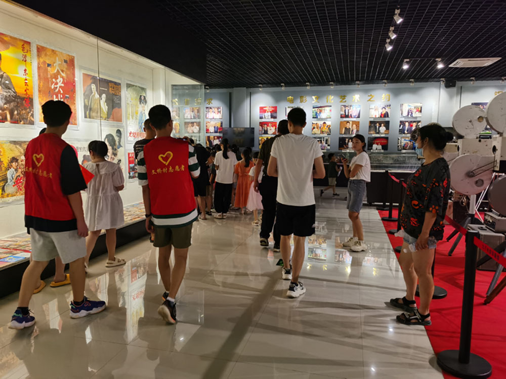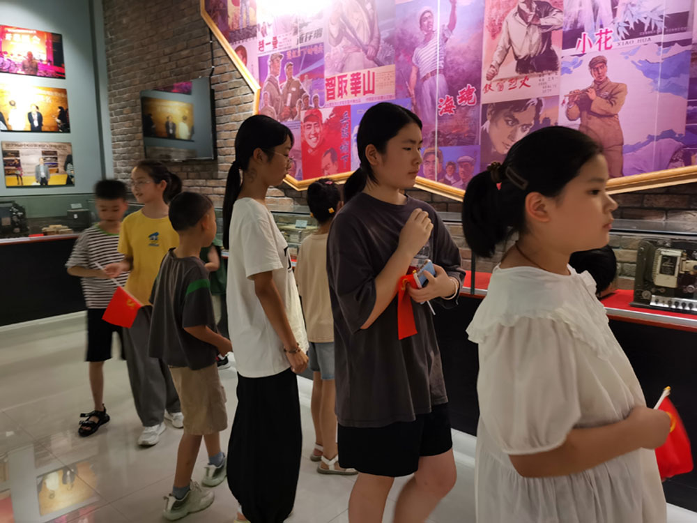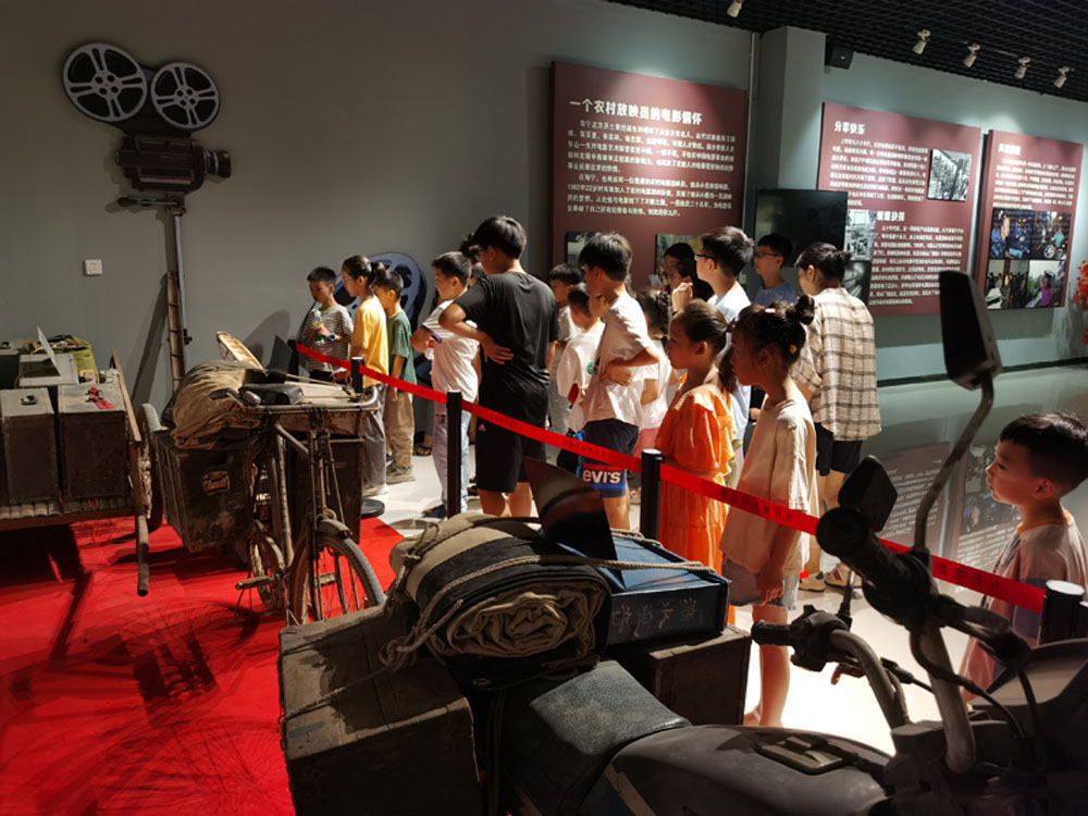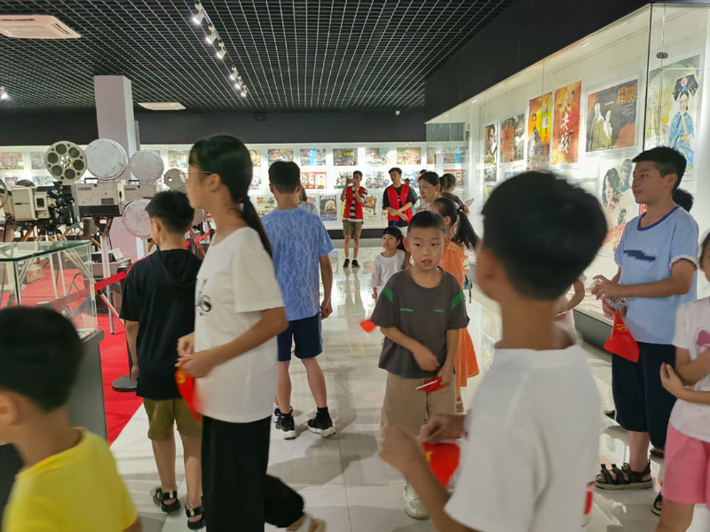 2023年7月27日下午,新华村文桥村开展暑期春泥计划系列活动,传承红色基因活动,重温光辉历史,体悟建党精神,走进海宁市许村镇九斤电影珍藏馆。展厅中陈列的红色经典电影海报和老放映设备让孩子们回顾了共产党的光荣发展历史和曲折前行的光辉历程。徐九斤先生亲自为同学们讲述了电影放映的故事。参观之余,大家在放映厅一起观看了爱国主义电影《地雷战》。