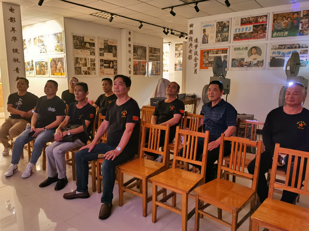 2023年7月30日,海宁舟桥兵庆八一到访许村九斤电影珍藏馆参观。大家在珍藏馆见到了上百张经典老电影海报及各色放映机,大开眼界的同时也了解了我国电影行业的发展。参观之余,大家还在放映厅一起观看了纪录电影《周恩来外交风云》。