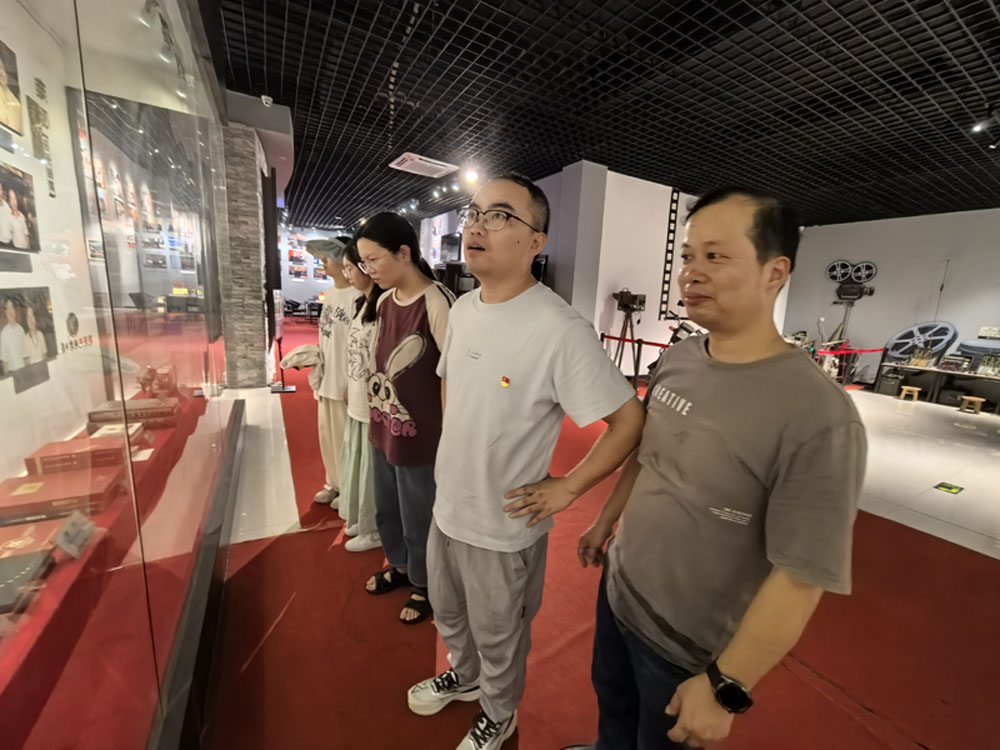 2025年8月22日,海宁紫薇水务有限责任公司党支部组织了一场意义非凡的党史学习活动,党员们一同前往许村九斤电影珍藏馆参观学习。