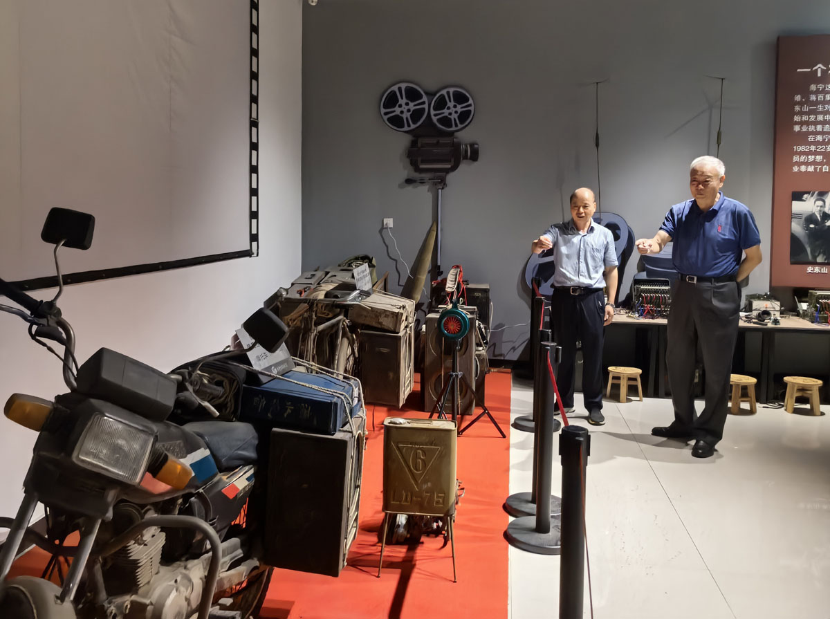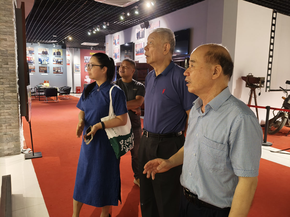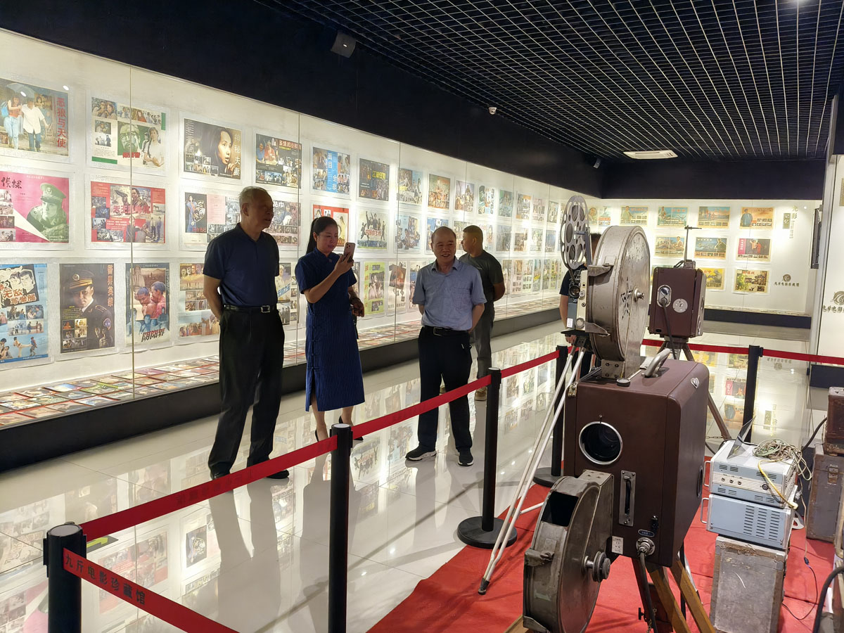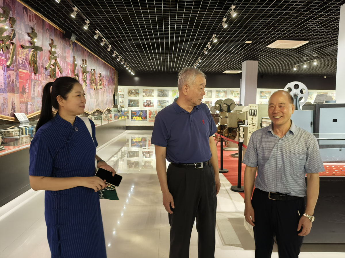 今年正值九斤电影珍藏馆开馆10周年。张丕民理事长仔细参观了馆内珍藏的各时代电影放映设备及电影史料,高度赞扬了徐九斤同志对中国电影文化传承和保护所作出的贡献。慰问期间,张丕民与欧阳莹详细了解了农村电影放映的工作情况,勉励徐九斤师徒继续发扬"影教育人"的服务精神,为丰富农村文化生活再立新功。