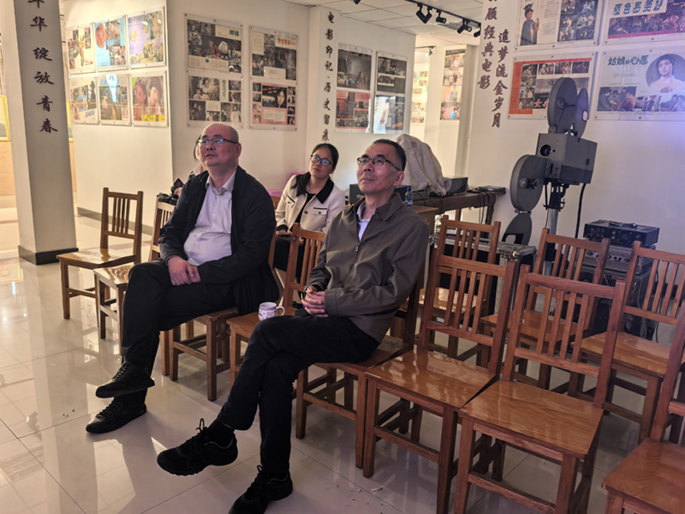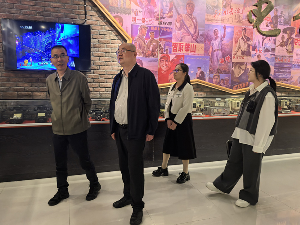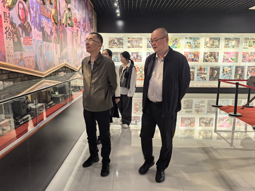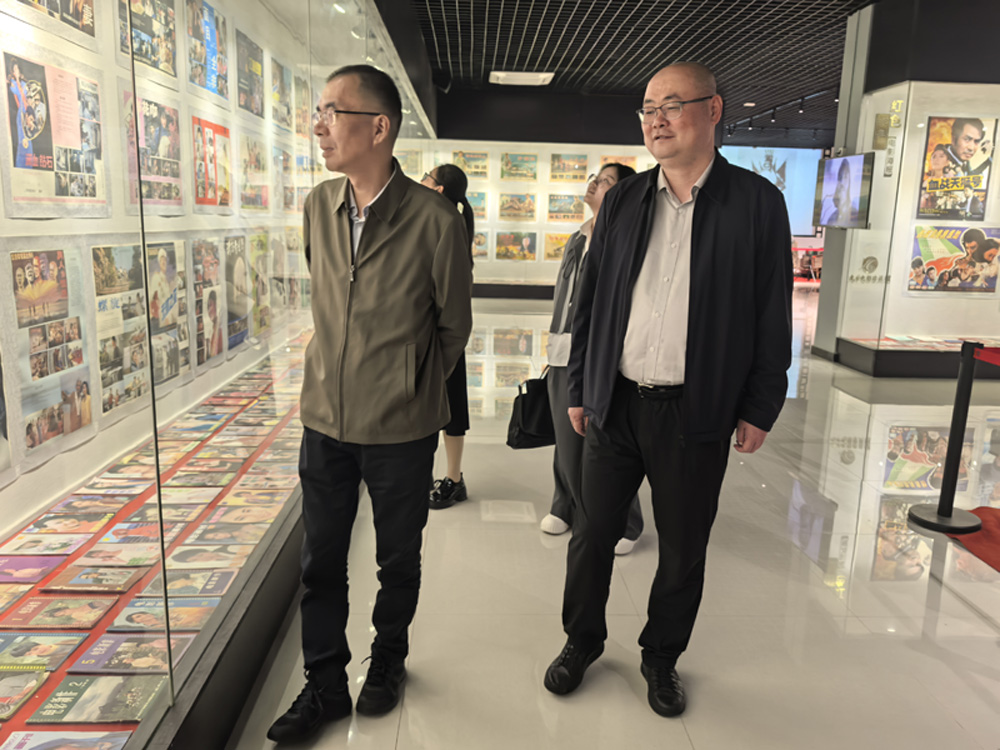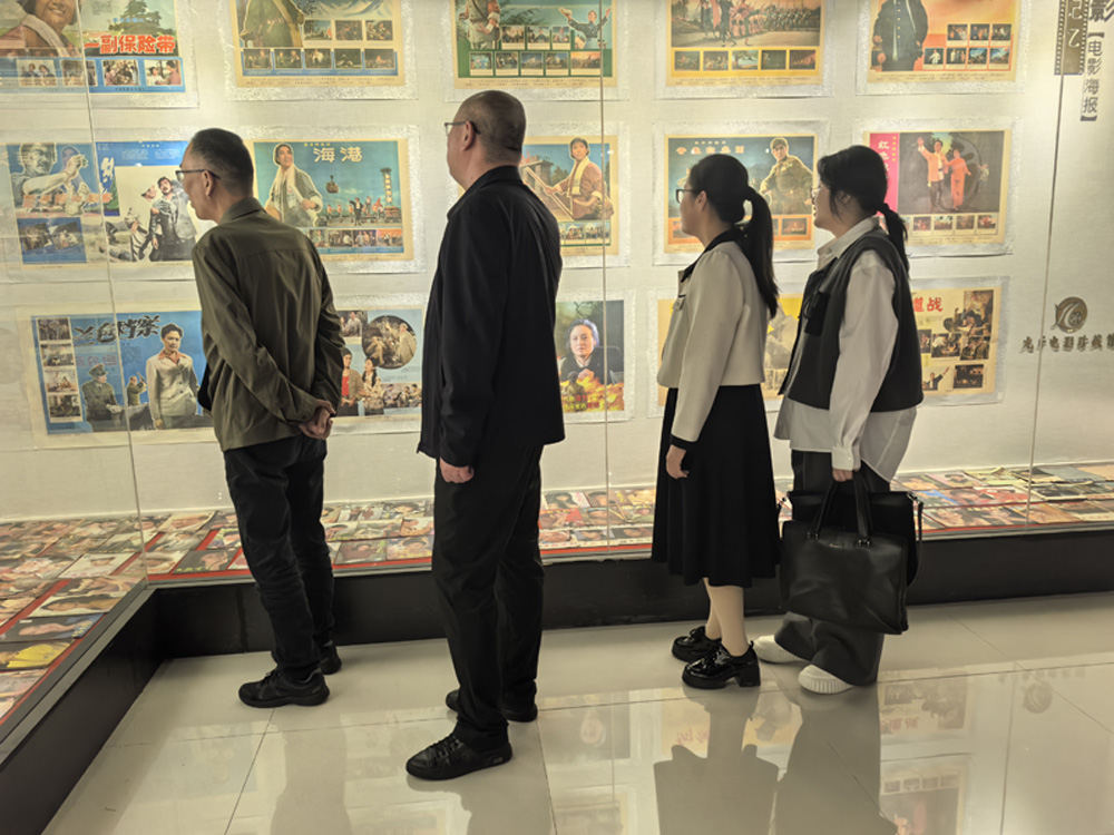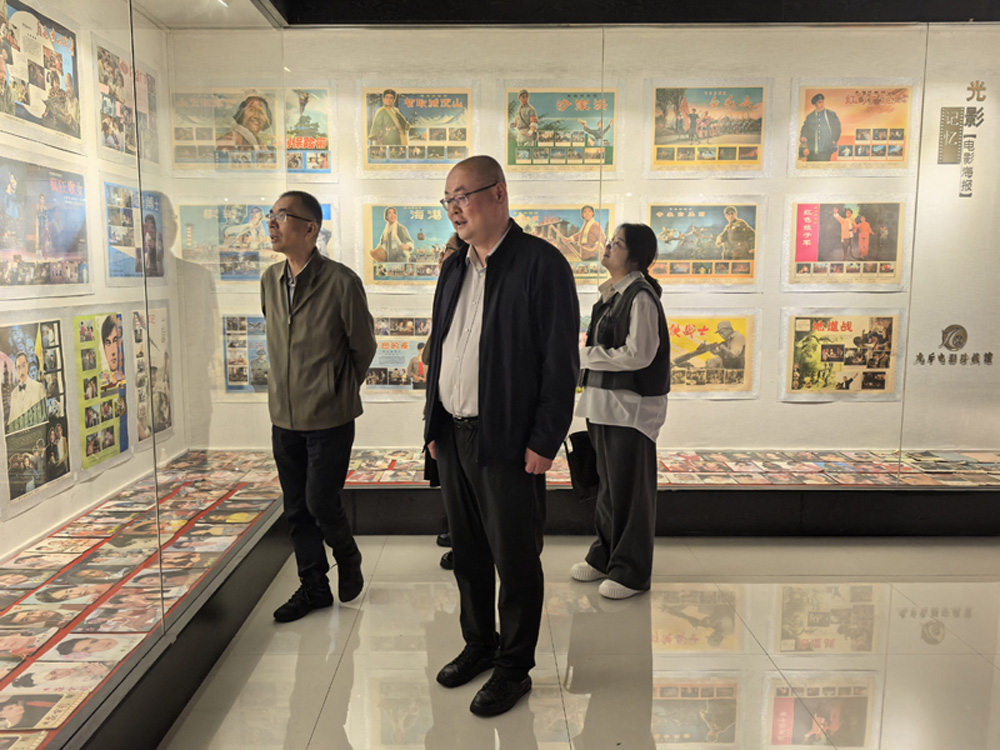 踏入珍藏馆,丰富的电影藏品瞬间吸引了众人的目光。从泛黄的老电影海报到珍贵的胶片放映设备,每一件展品都承载着电影发展的历史记忆。倪生其一边认真聆听讲解,一边驻足细细端详,不时与许新峰、叶凤燕交流探讨,对馆内藏品的丰富性和专业性给予高度评价。